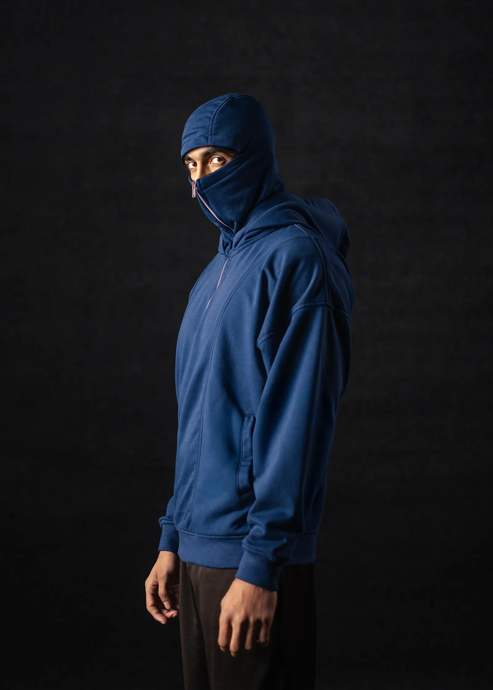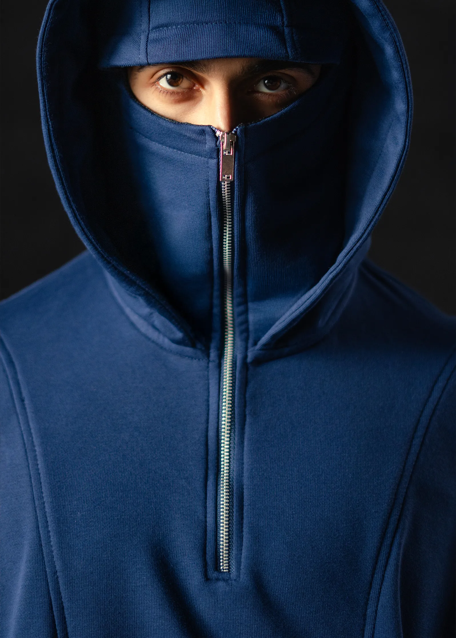 Built for presence and precision. The Covert Masked Hoodie redefines functional minimalism with a double-hood design — an outer hood for structure and an inner masked hood lined with breathable net fabric for comfort and coverage.
