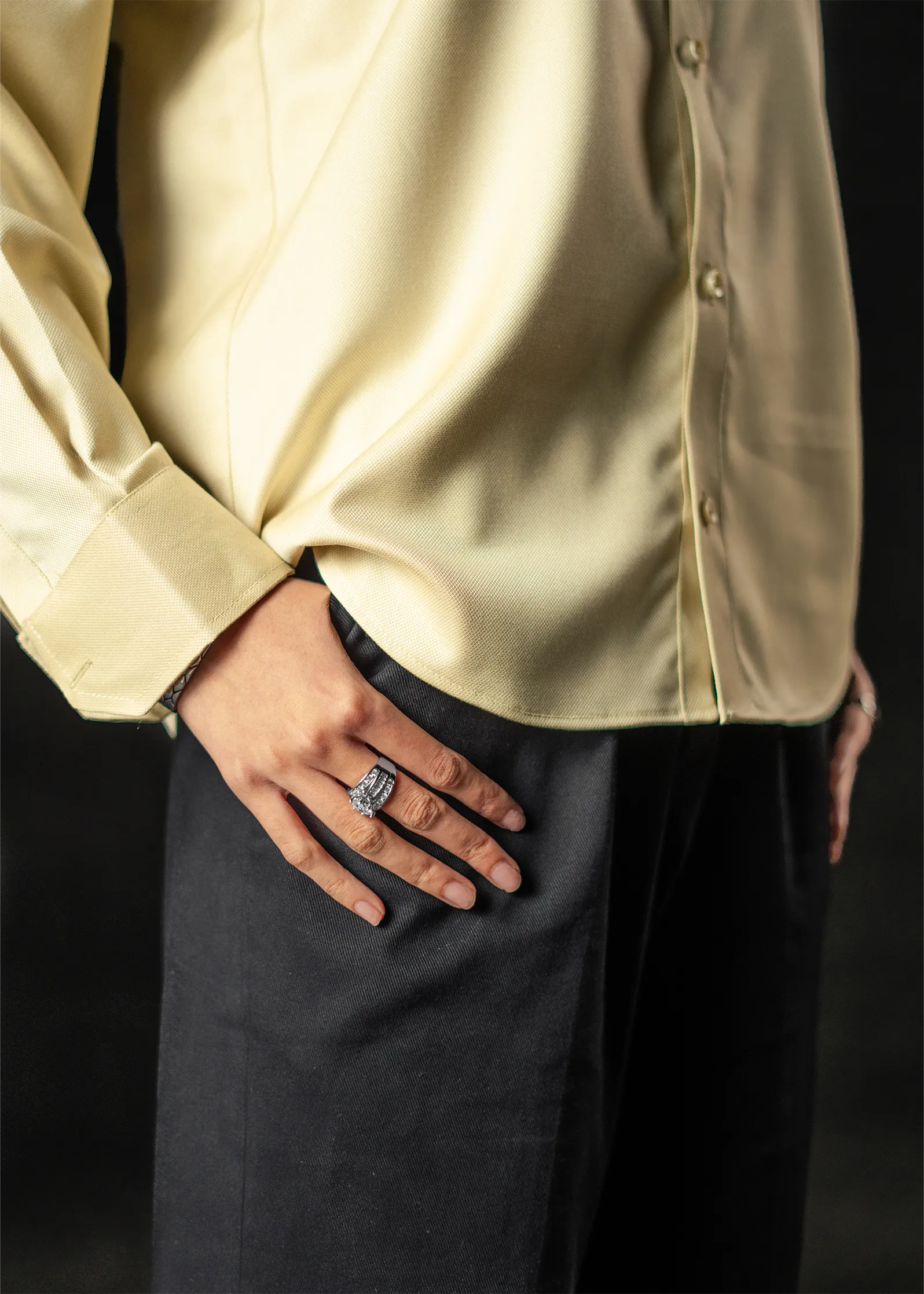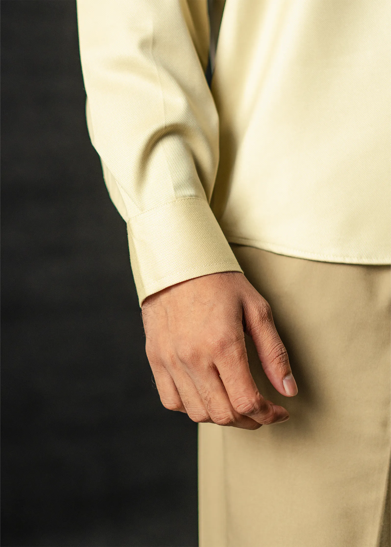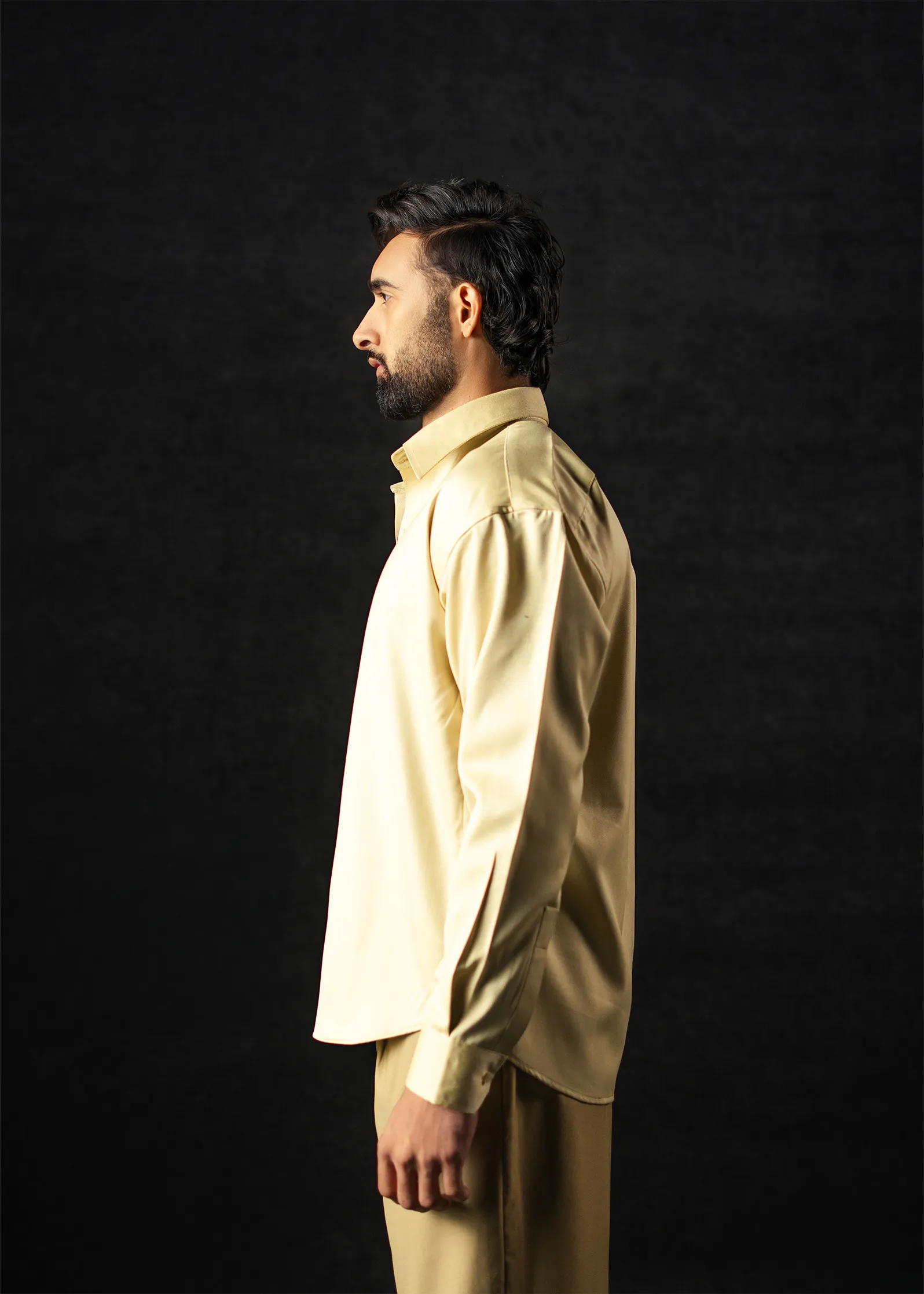Crafted for understated sophistication, this Latte Beige textured dress shirt brings depth and dimension to classic minimal wear. Made from a 180 GSM cotton-poly blend, it offers lightweight comfort with a subtle textured weave that enhances both feel and form. The natural beige tone complements any palette, making it ideal for refined winter layering or standalone formal styling. Perfect for all seasons. Structured yet breathable, this shirt maintains a crisp silhouette throughout the day — blending timeless tailoring with modern ease.