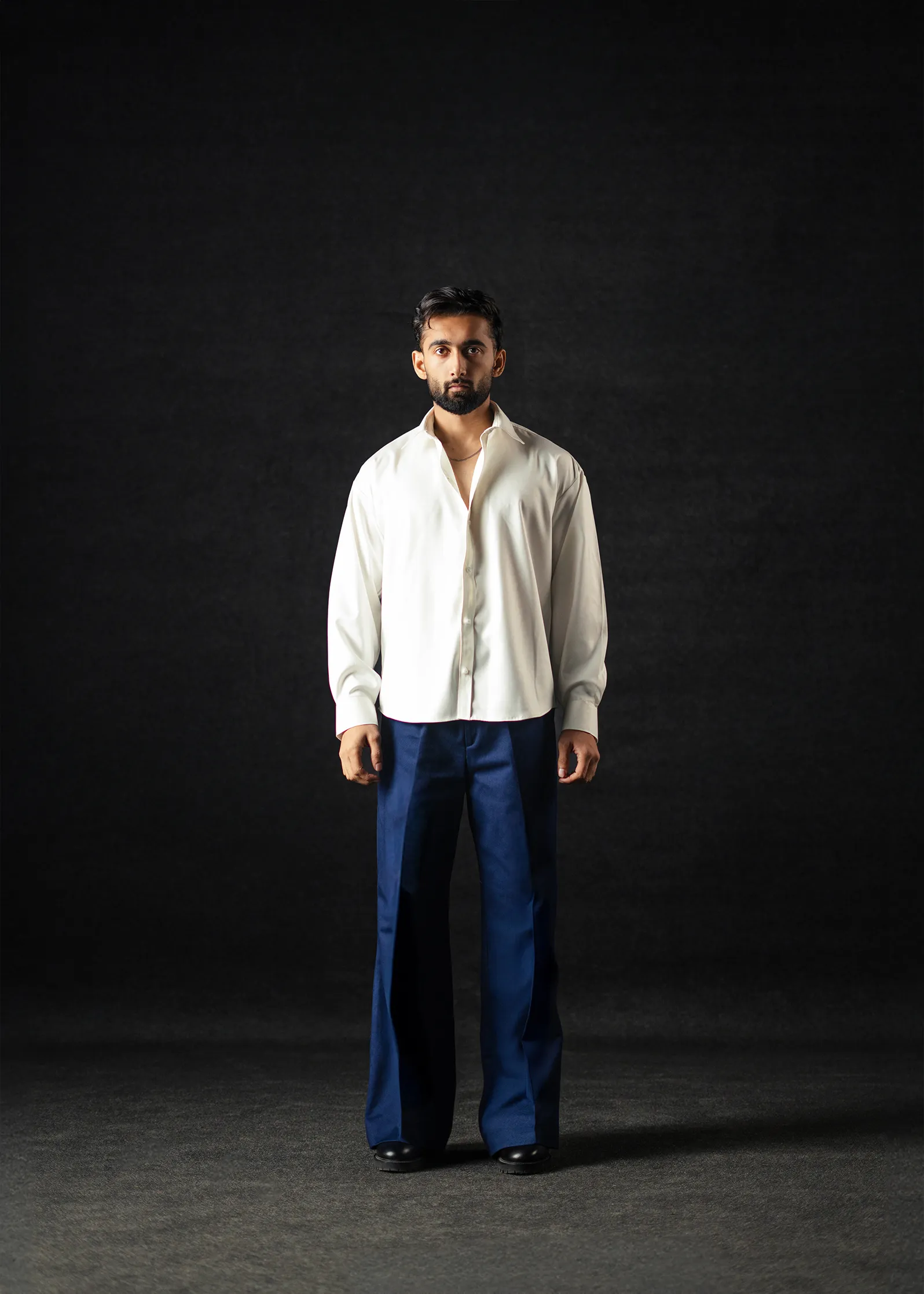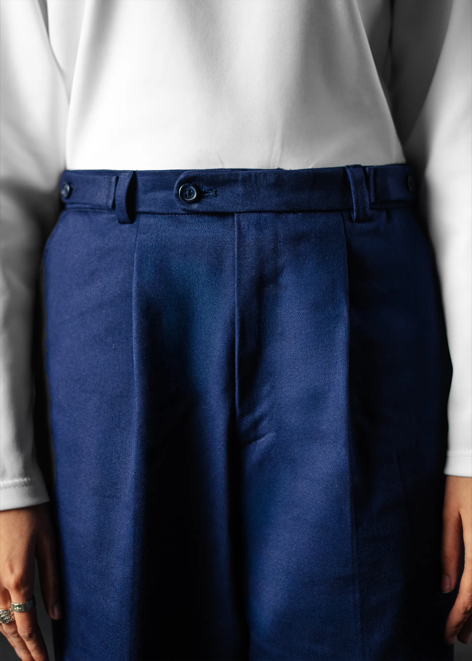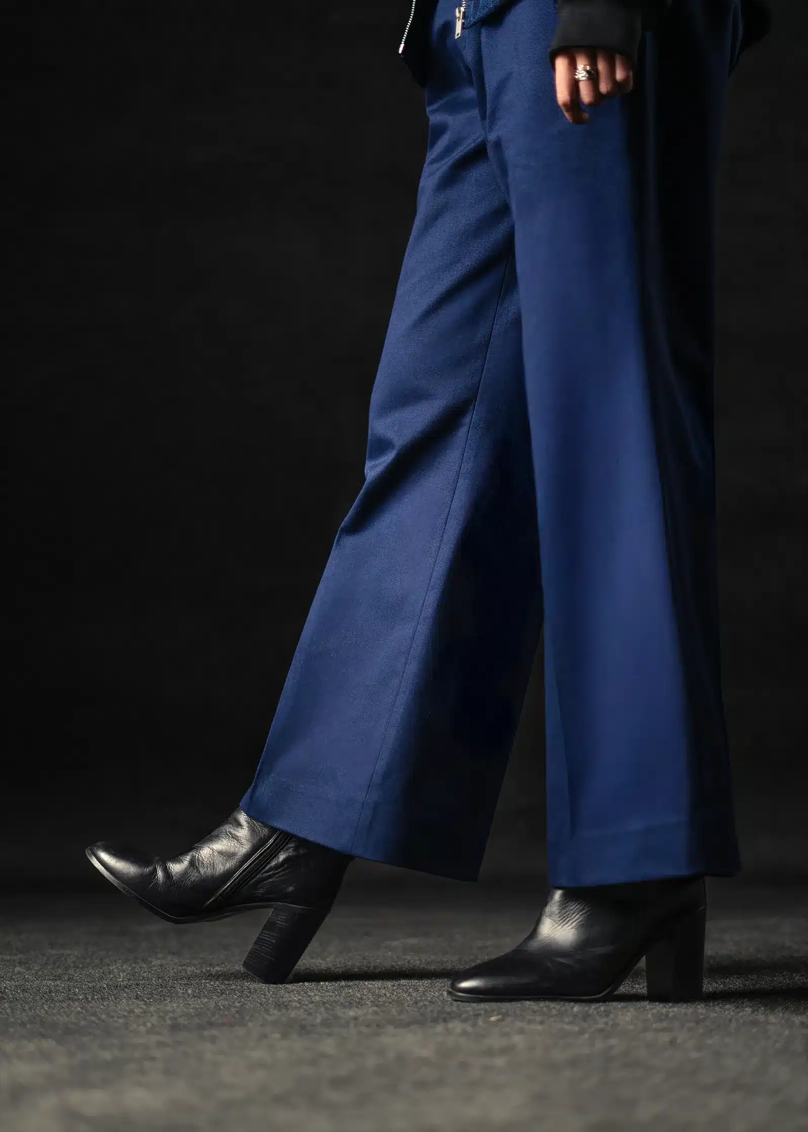 Where minimal design meets timeless fashion. Crafted from premium 320 GSM drill cotton, these Oxford Blue boot-leg pants embody refined structure and understated confidence. The tailored flare elongates the silhouette, while the deep blue hue adds a subtle sophistication that transitions effortlessly from daywear to night fits. Perfect for those who value quiet luxury — clean lines, precise tailoring, and fabric that speaks for itself.