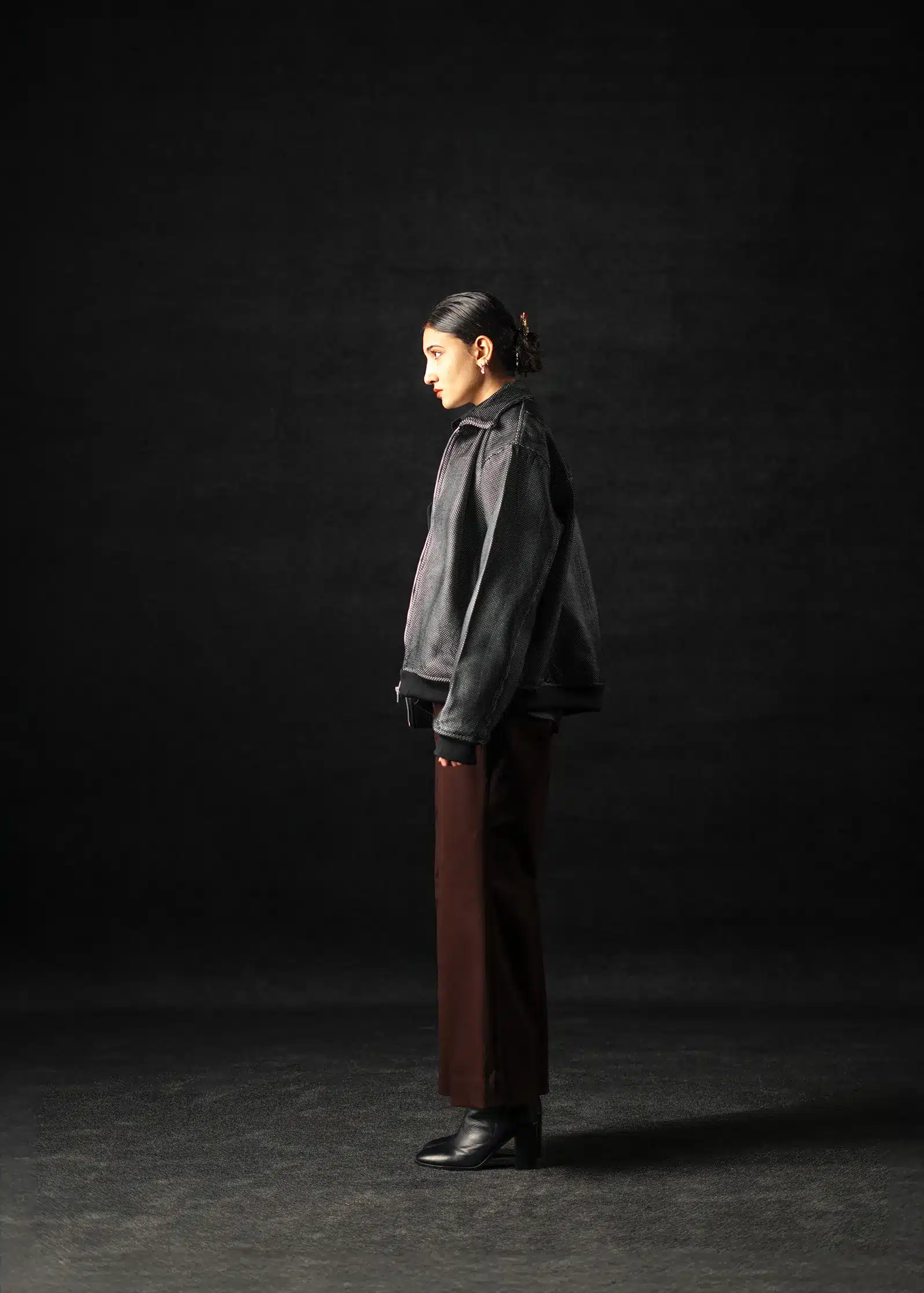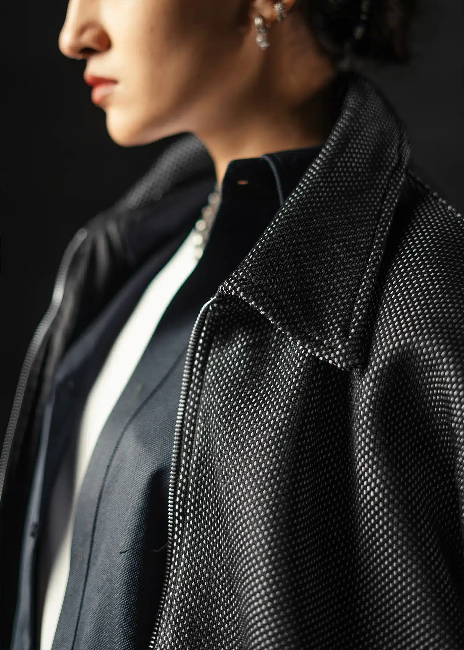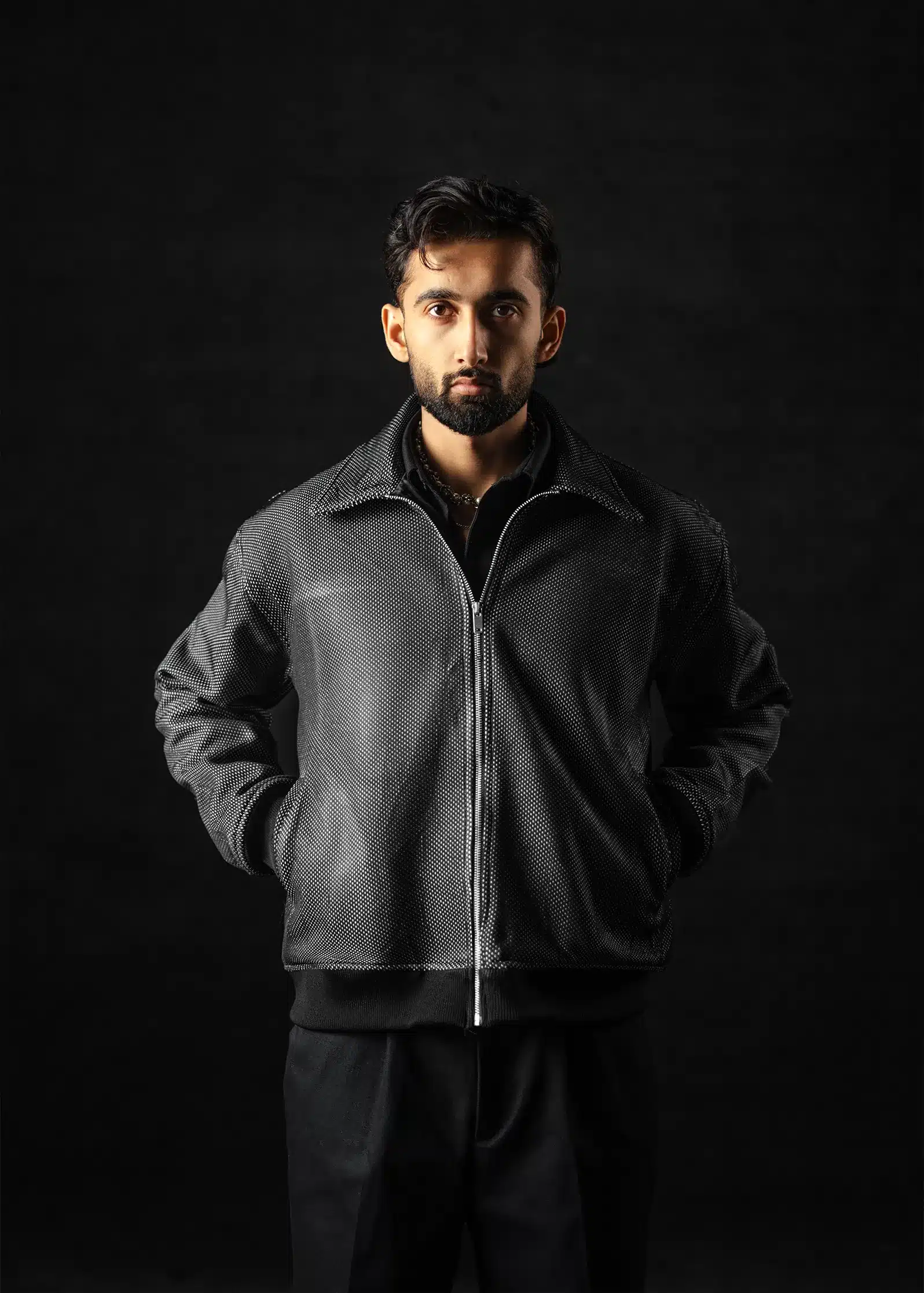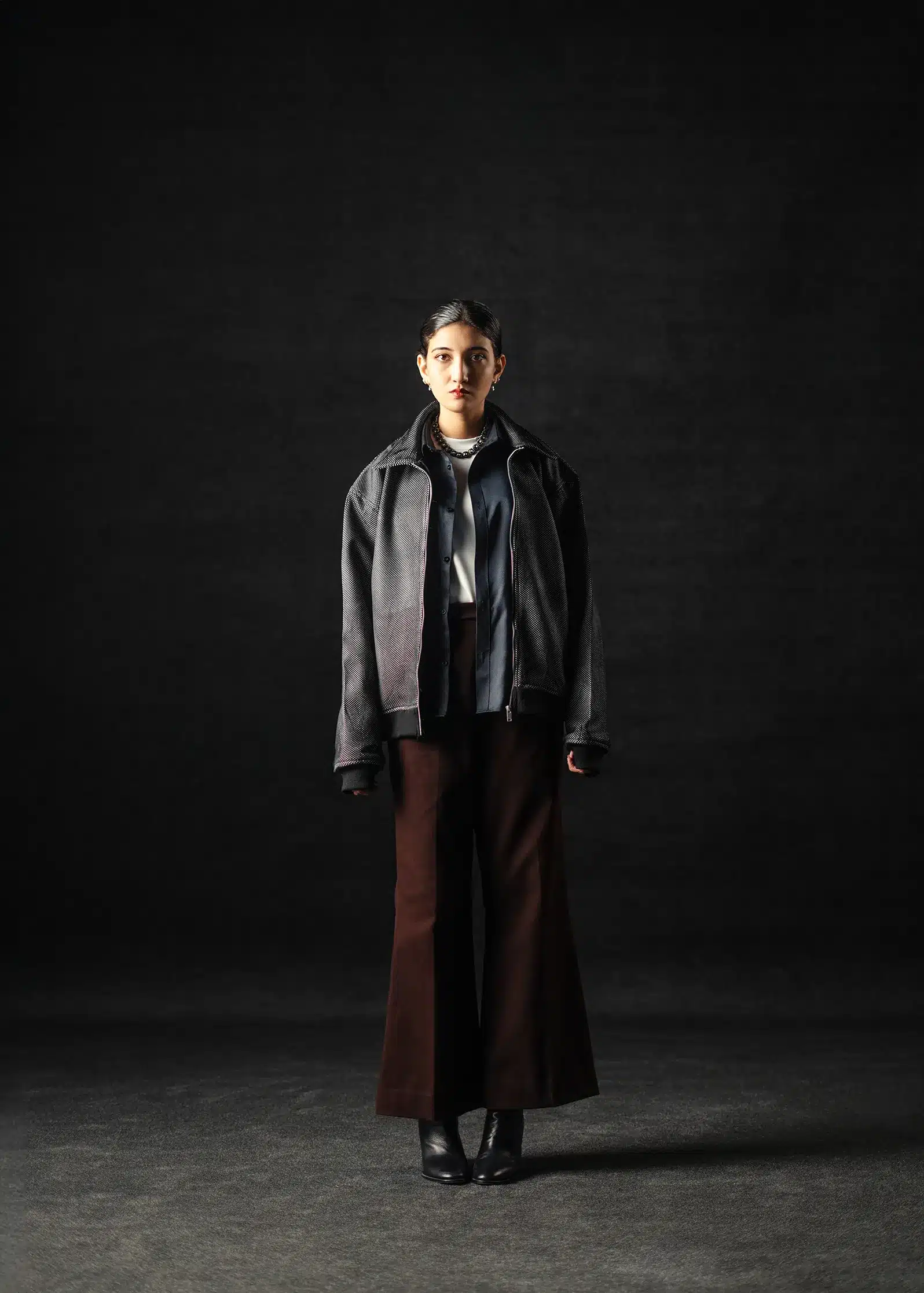 The collared design and ribbed cuffs and bottom deliver a refined boxy-oversized fit, while the achenes texture brings out versatility and sophistication – equally suited for modern streetwear or elevated winter ensembles.