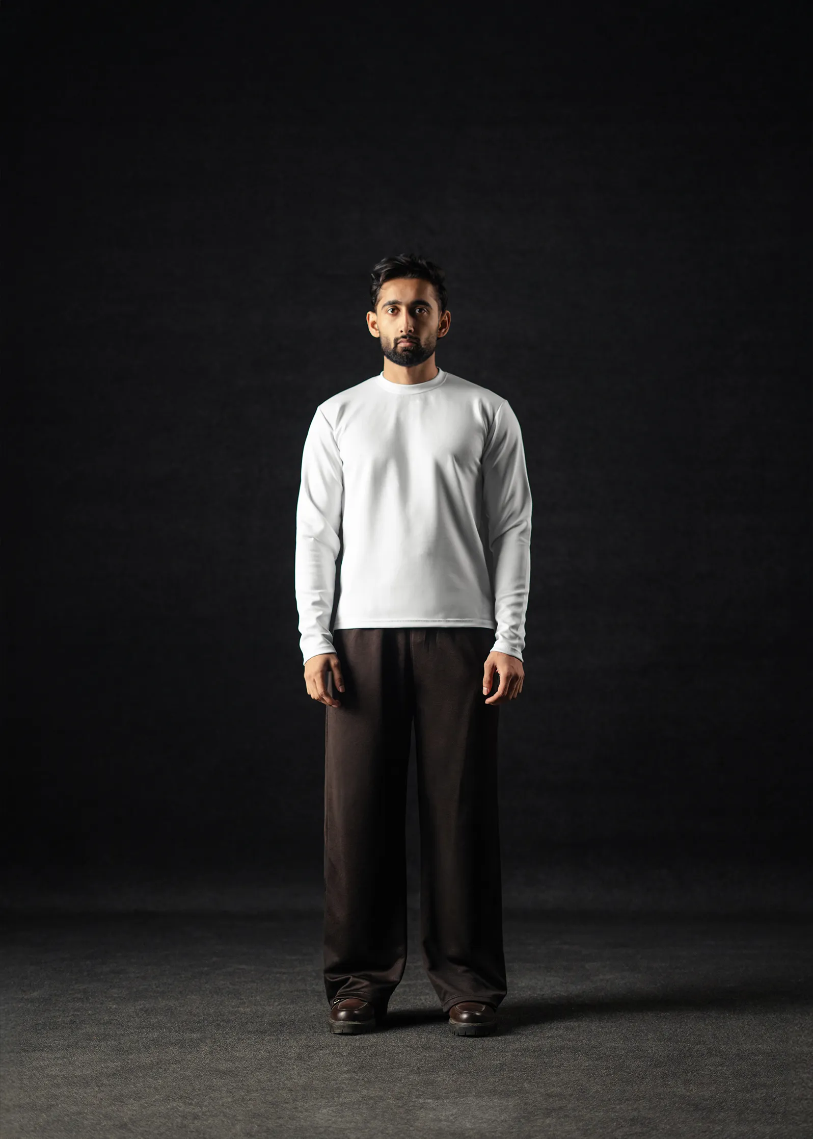 Balanced between comfort and form, these 280 GSM cotton-poly wide-leg trousers bring structure to effortless wear. The elastic waistband ensures flexibility, while the relaxed drape creates a clean, fluid silhouette that moves with you. Designed for durability and ease, this piece transitions seamlessly from casual everyday wear to elevated layered looks, embodying refined minimal streetwear.
