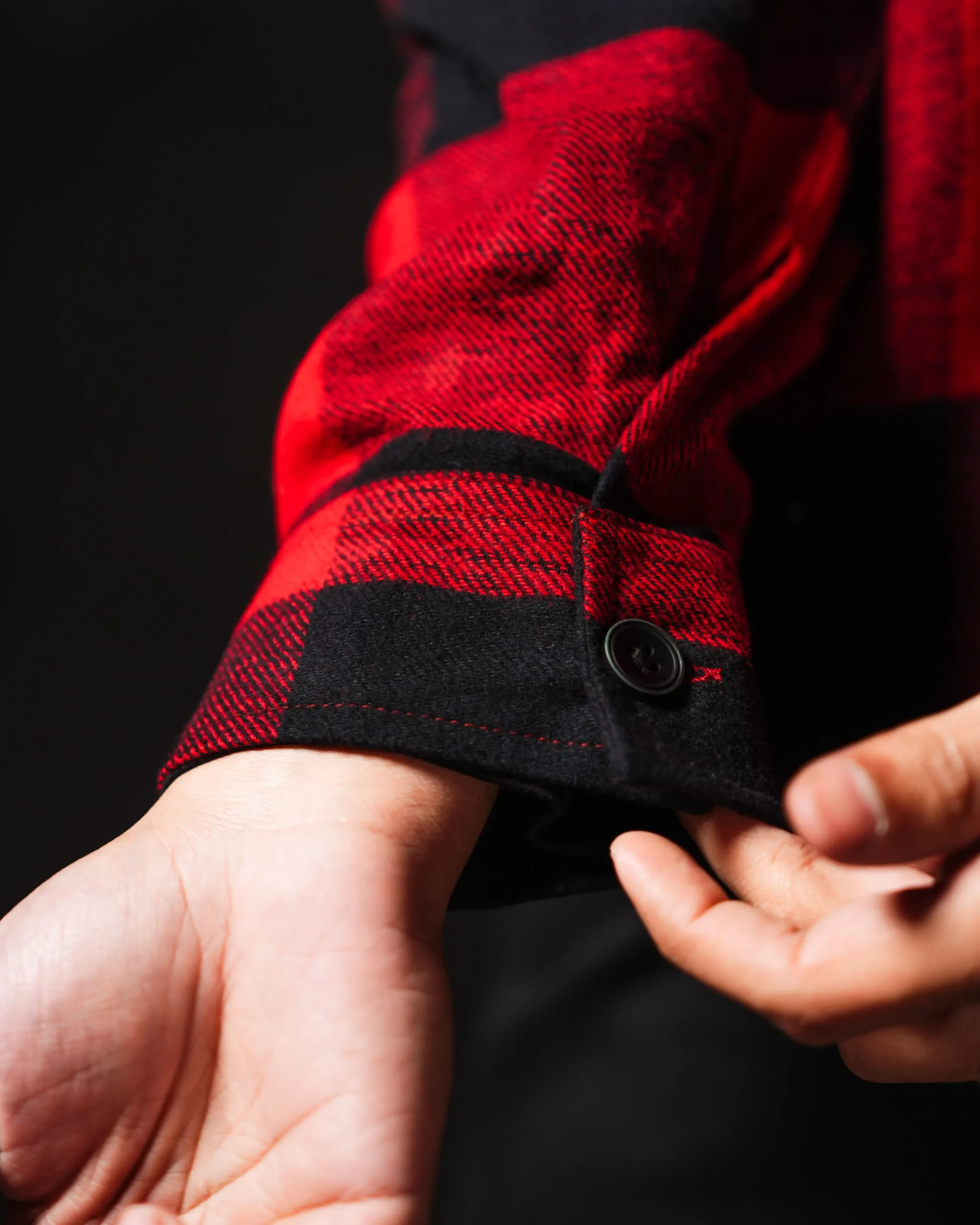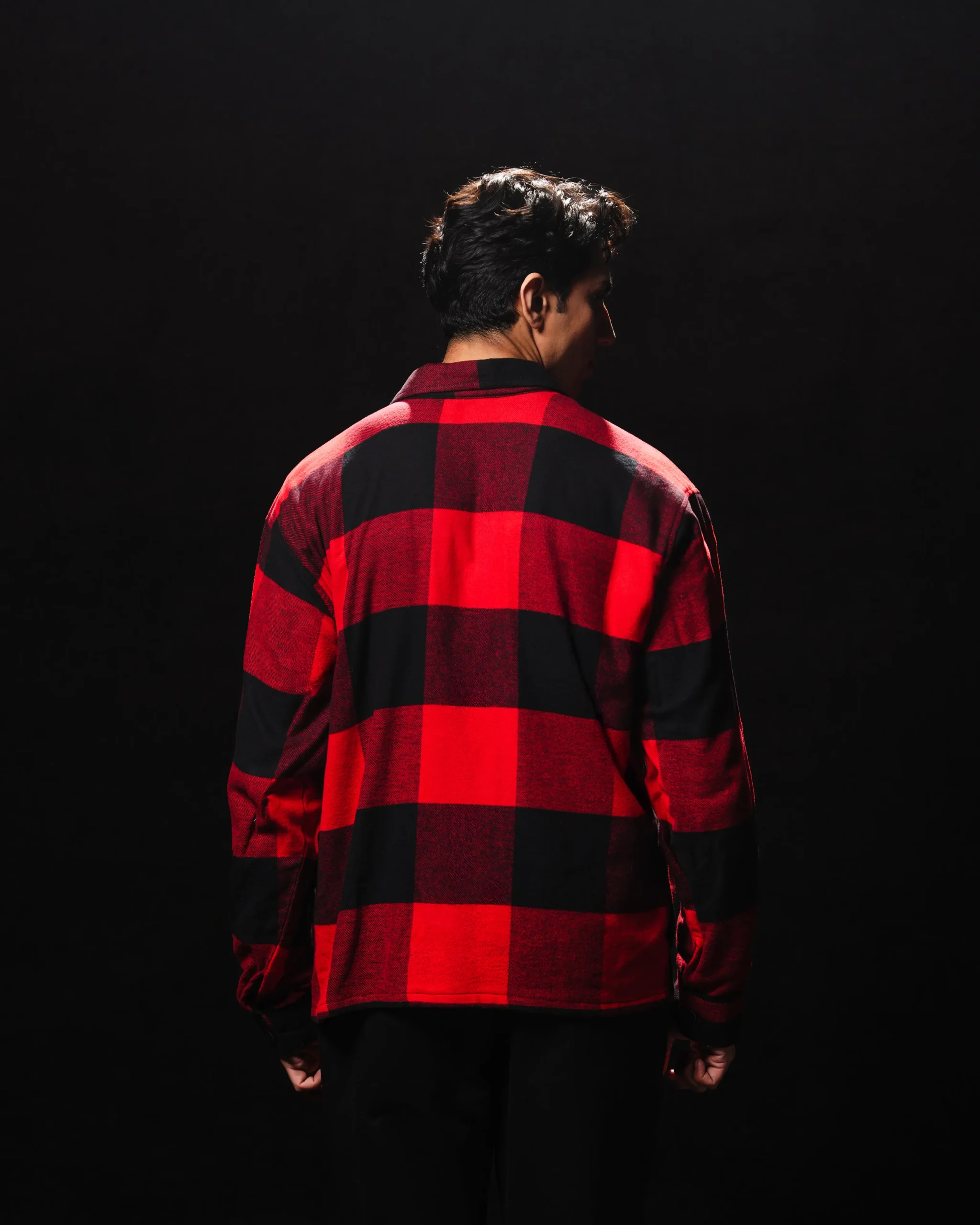 The Red & Black Check Flannel Jacket reworks a classic plaid into a structured, modern layer built for comfort and versatility. Crafted from a soft yet substantial flannel fabric, it delivers warmth without weight, while the oversized check pattern adds confident visual impact. The red and black contrast brings timeless appeal with a strong, graphic edge.