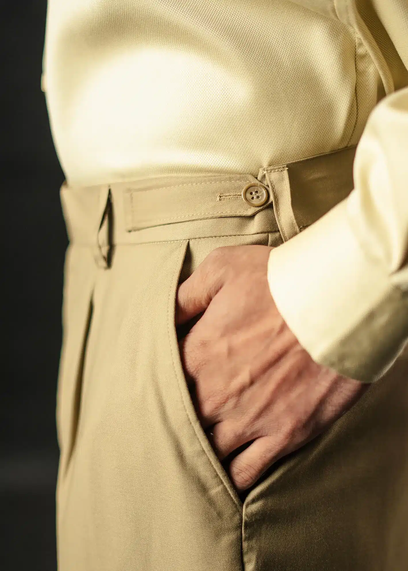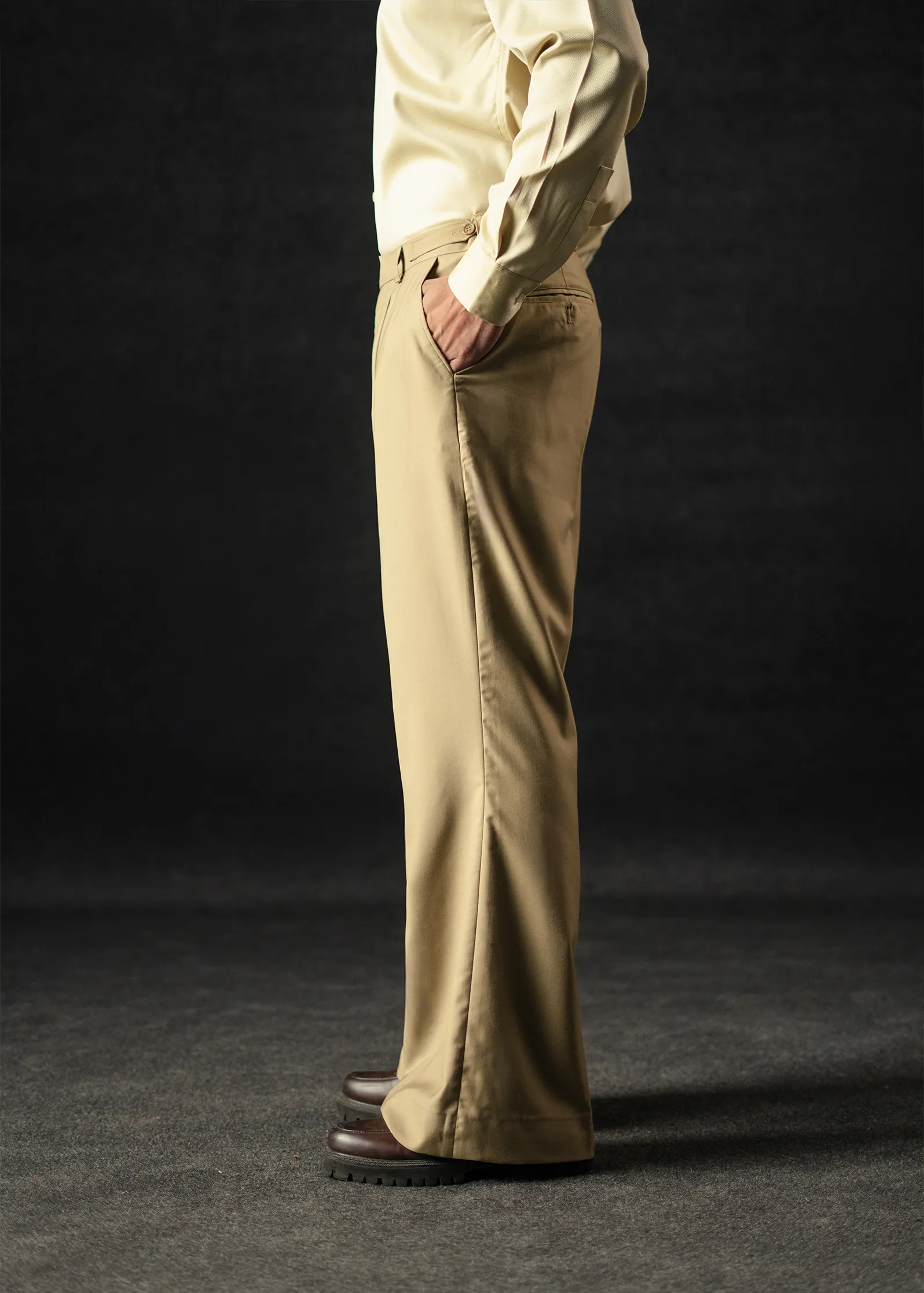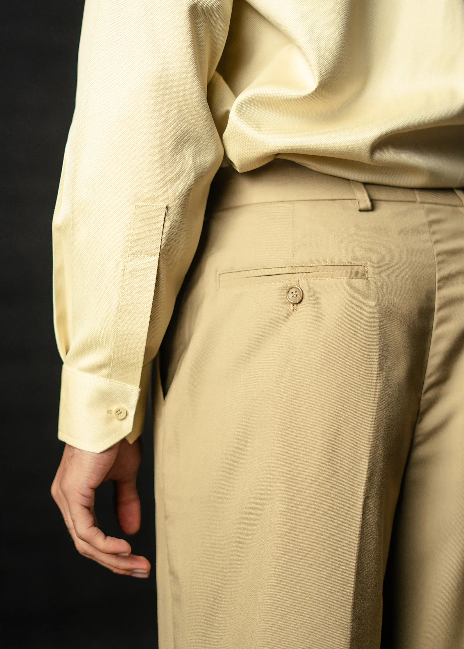 Effortless style meets natural tone. Crafted from 180 GSM cotton, these Verdant Olive boot-leg pants offer a light, breathable fit while maintaining refined structure. The subtle green hue blends minimalism with versatility ideal for transitional seasons and relaxed formalwear. Designed for clean silhouettes, comfort, and modern movement.